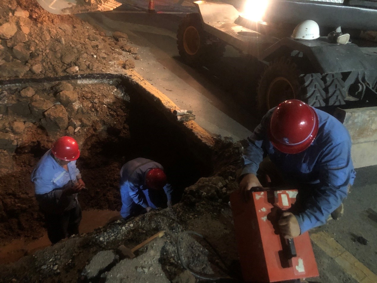 2020年7月6日14時(shí)許,在排查過(guò)程中發(fā)現(xiàn)紅星街處供水管線破裂,為了不影響高考期間供水,我公司立即組織人員搶修,17時(shí)完成搶修工作,恢復(fù)正常供水。20時(shí)左右,又有市民反映西山路處有漏水情況,我公司馬上組織人員檢查,最后發(fā)現(xiàn)西山路處一分支管線破裂漏水,為了保障周邊兩個(gè)小區(qū)的用水,我公司立即維修,23時(shí)完成了維修,保障了周邊小區(qū)高考期間的安全供水。